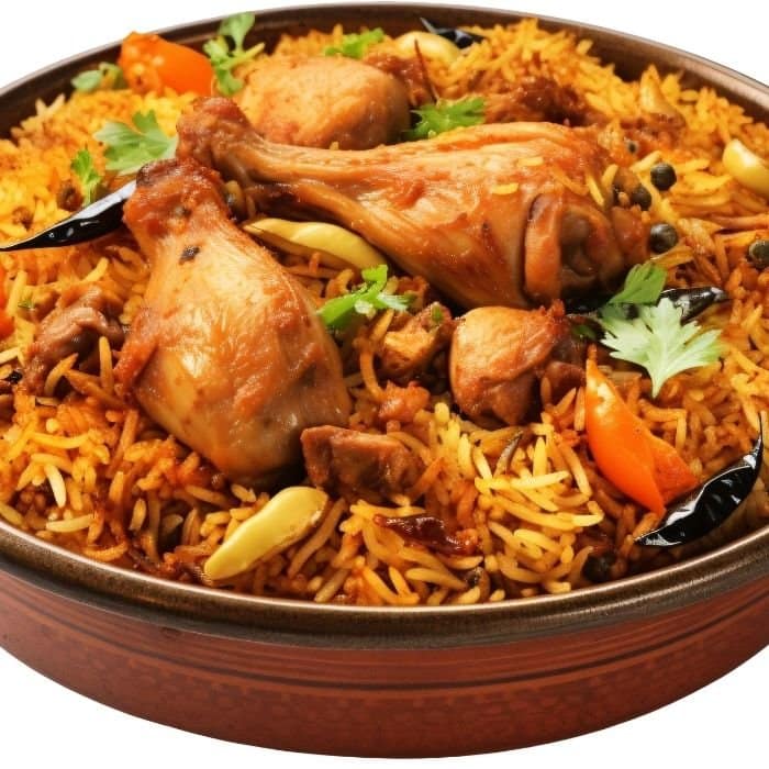 Chicken Biryani (Boneless) – Half prepared fresh at Garuda Grand, rich in authentic flavors and served hot for a satisfying dining experience.